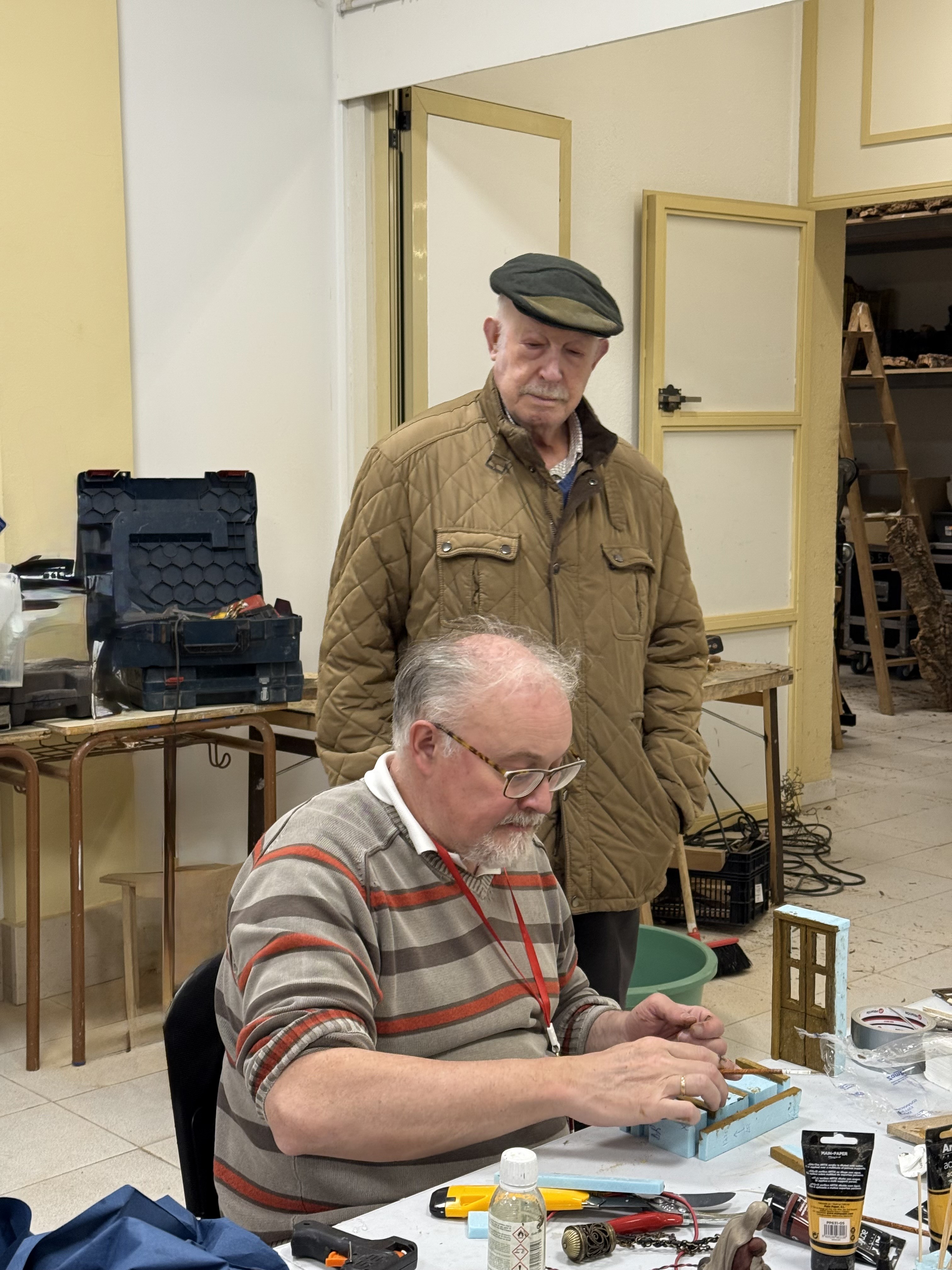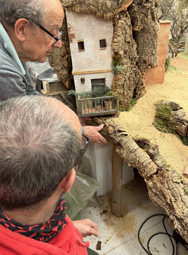 Juan José Granizo, médico de profesión y belenista por devoción, ha construido y reformado decenas de construcciones para el Belén. Los retoques de última hora bajo la atenta y tierna mirada de su padre, Juan Granizo.