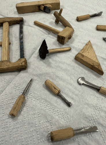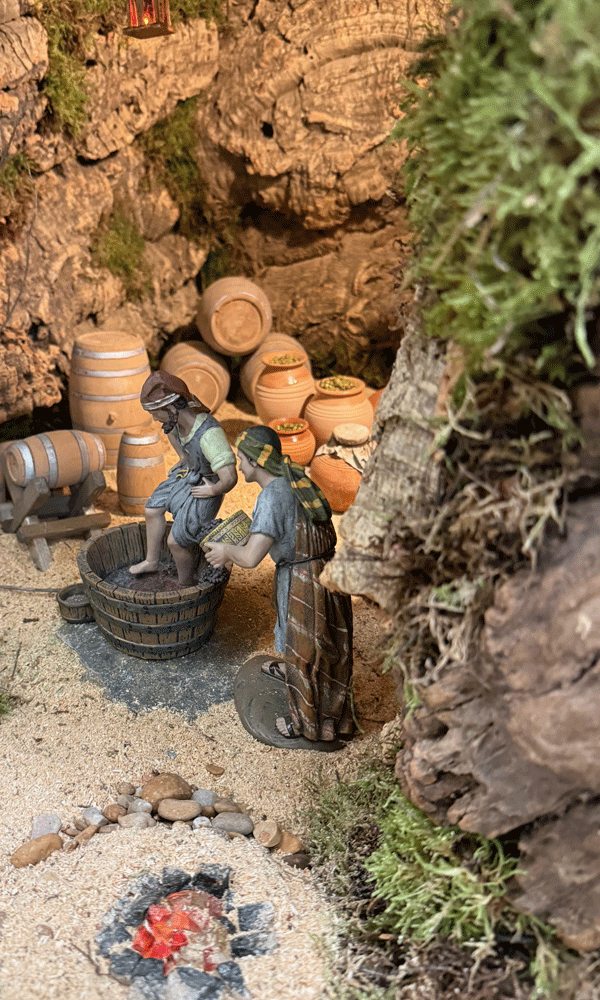 Dice Ángel Álvarez que lo bonito del belén de la Virgen es que cada año es diferente. No solo porque los escenarios cambian de situación -que también- sino porque siempre hay nuevas incorporaciones. Como el pajar perfectamente recreado -la carretilla es una auténtica monada-, las tinajas de arcilla y los toneles de madera, con aros metálicos, de los molinos de aceite y vino o las herramientas en miniatura -ojo al serrucho- para el aserradero.