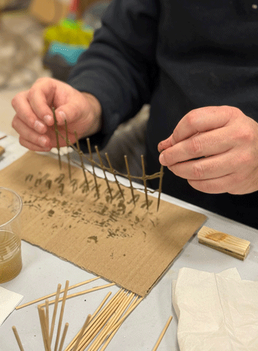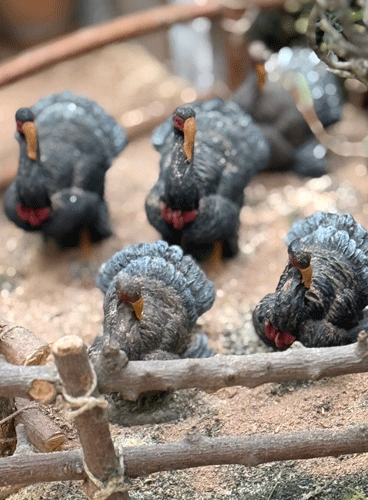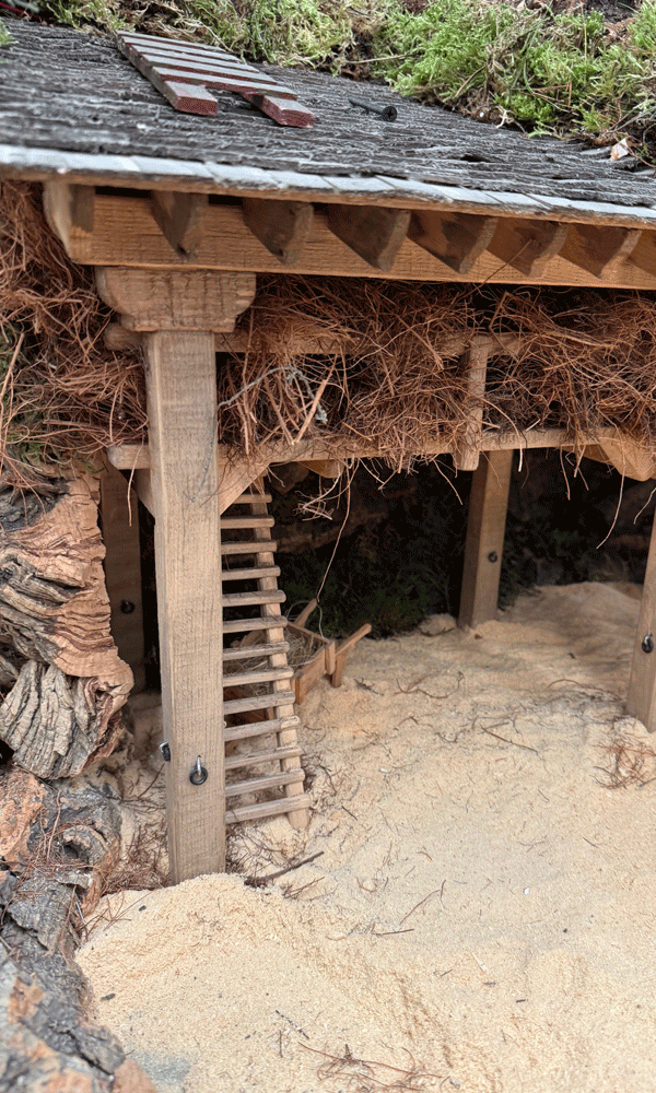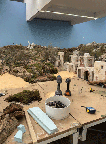 También hay que reformar casitas y ampliar elementos como el vallado con palos de tamaño y grosor diferente. Dependiendo del cercado. Con un cuidado extremo en el caso de los palillos. Lo cuenta Jesús Ortega mientras muestra el resultado final a los reporteros. Y colorear el serrín para diferenciar tierras y praderas.