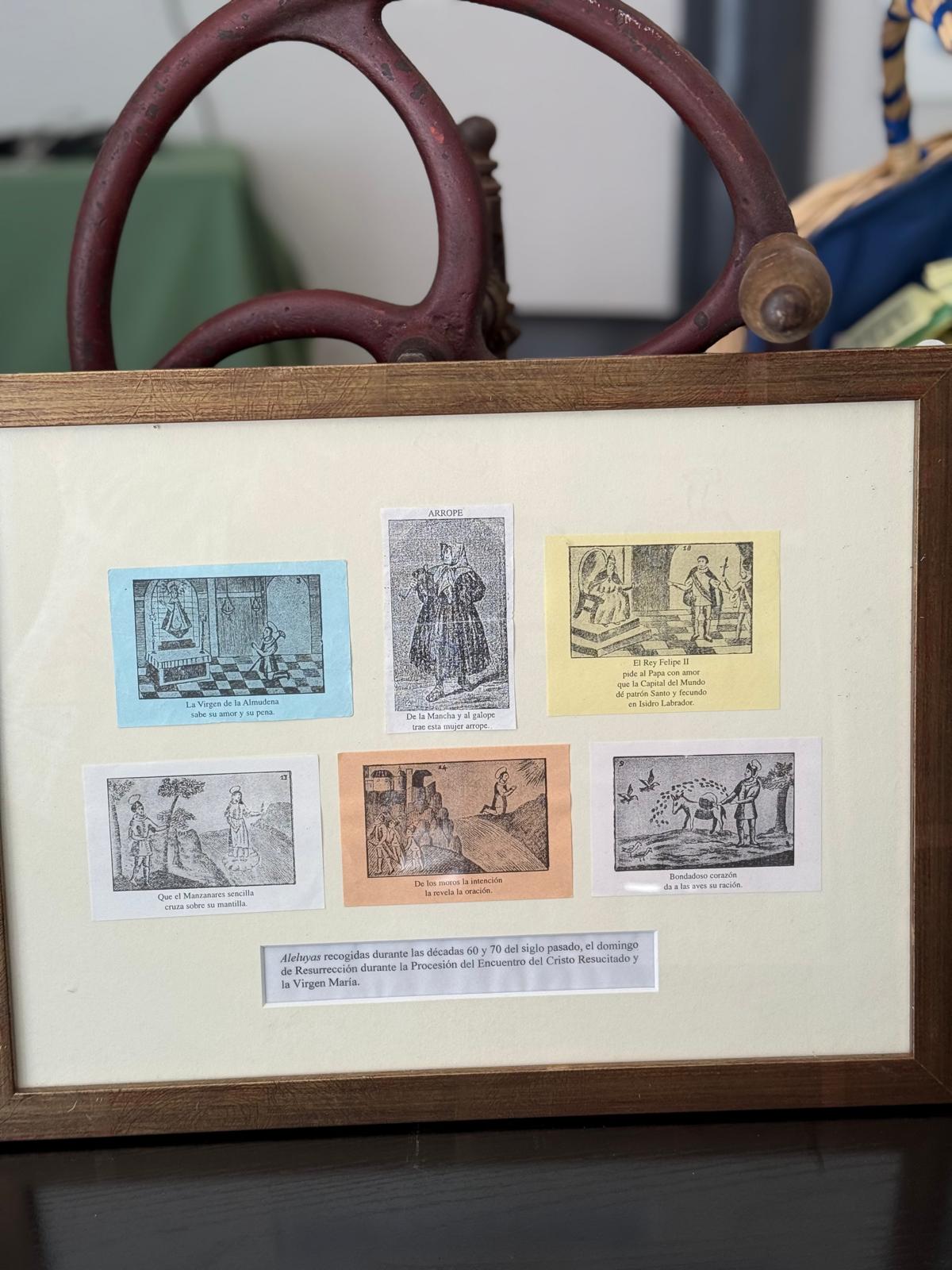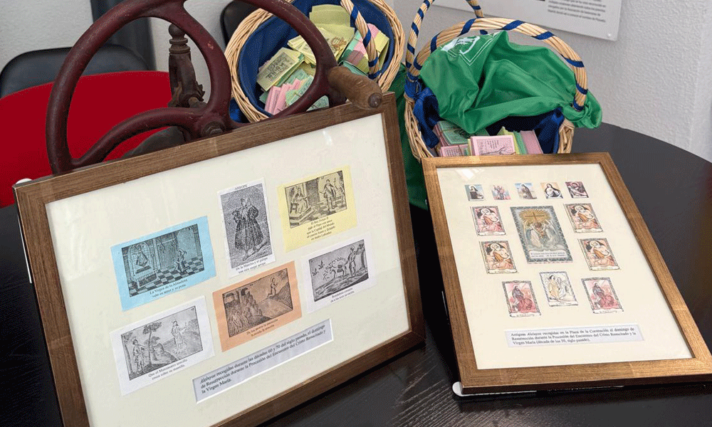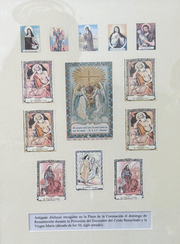 Saltamos en el tiempo. Llegamos a los años cincuenta del pasado siglo XX. Margarita Becerril asegura que poco antes de Semana Santa en su casa -la del abuelo- ella y sus hermanos hacían manualidades. Su padre traía hojas grandes con imágenes de santos enmarcadas en recuadros pequeños. Había que recortarlas, con destreza, para lanzarlas el Domingo de Resurrección. «No eran más grandes que los sellos y se precisaba concentración, después ya se llevaron a imprimir a editoriales; las había de la Virgen, del Sagrado Corazón, de San José y de Santa Rita».